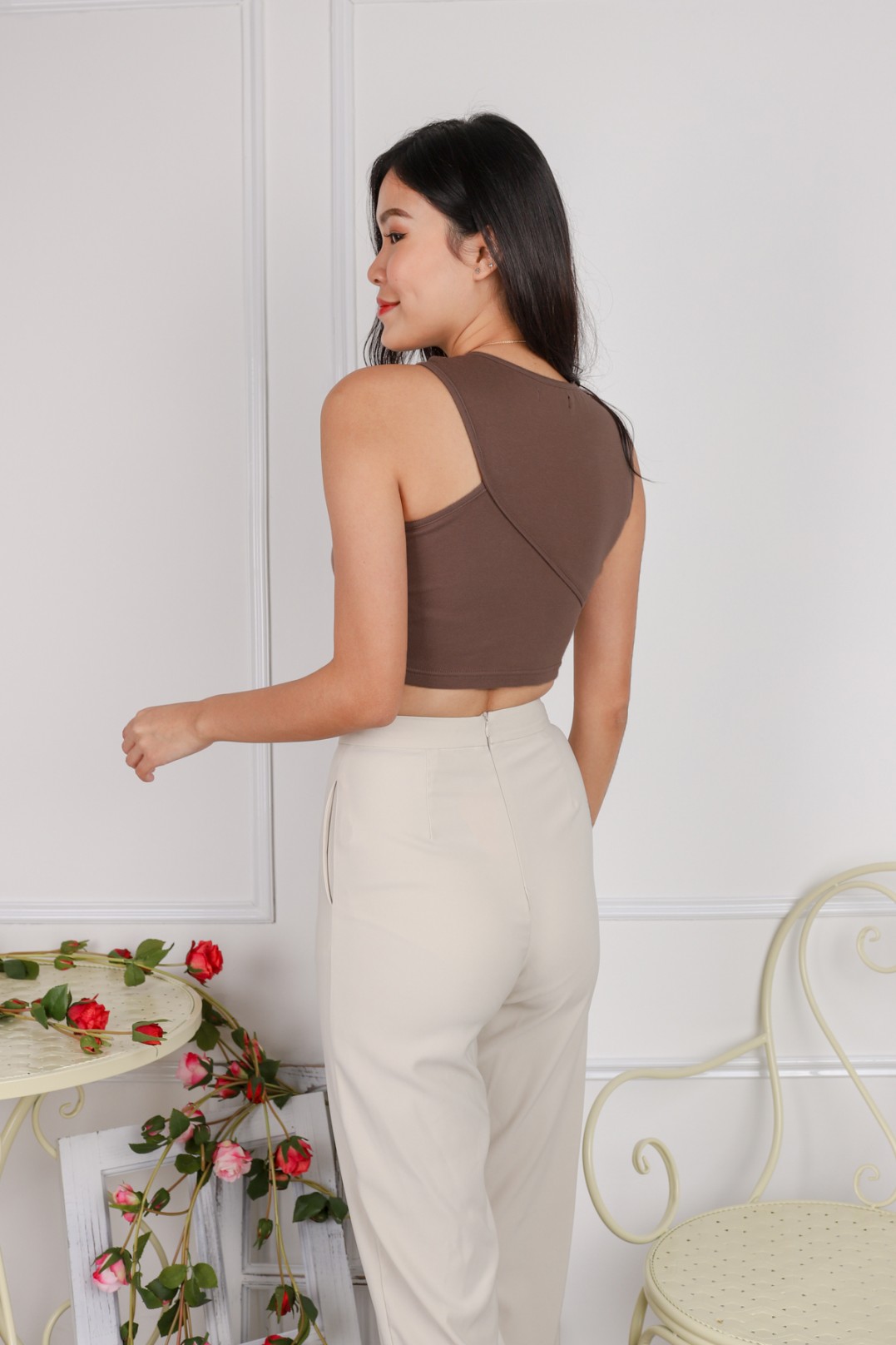 Basic but not really. Made from a comfy and stretchy fabric, Clorie cuts in asymmetrically, along with trimmings that will add some fun to your daily outfits!