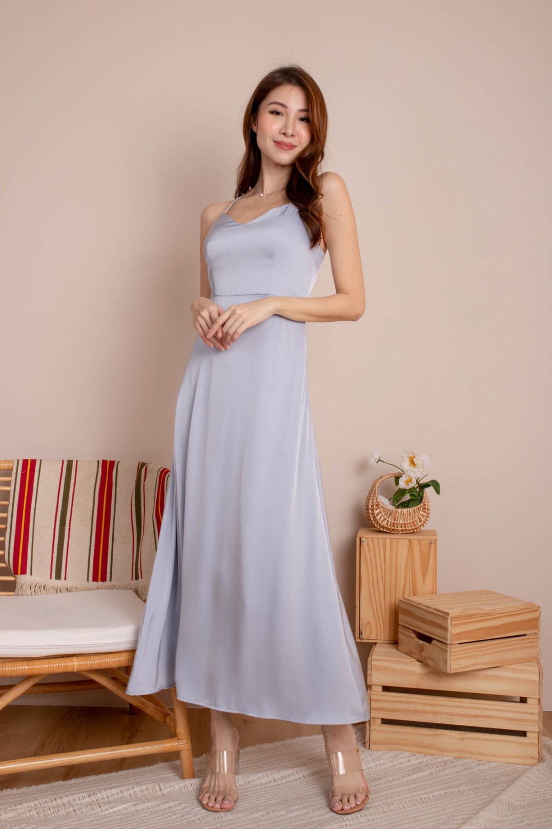 Aspel Cross-Back Padded Maxi Dress in Blue