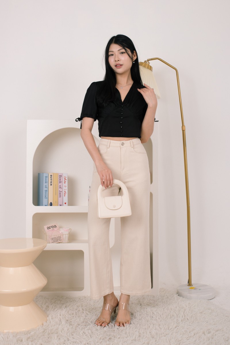 Shop Matching Bottom: Veron Straight Leg Denim Pants in Cream