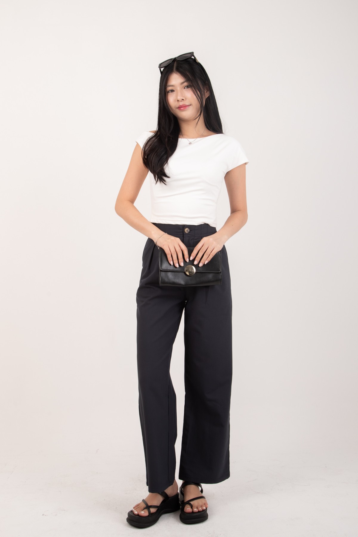 Made for modern workdays to casual outings, the Bellona Front Pleat Button Pants blend structure with softness. Featuring a flattering high-rise fit, elegant pleats, a clean button detail, and just above ankle cut, they pair effortlessly with any office staple. A polished essential in black, oat and white.