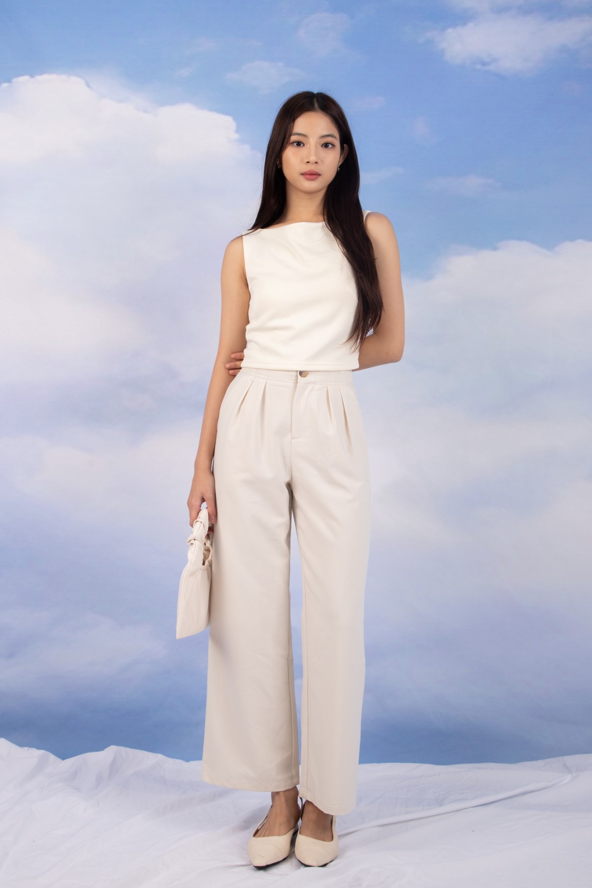 Shop Matching Bottom: Bellona Front Pleat Button Pants in Cream