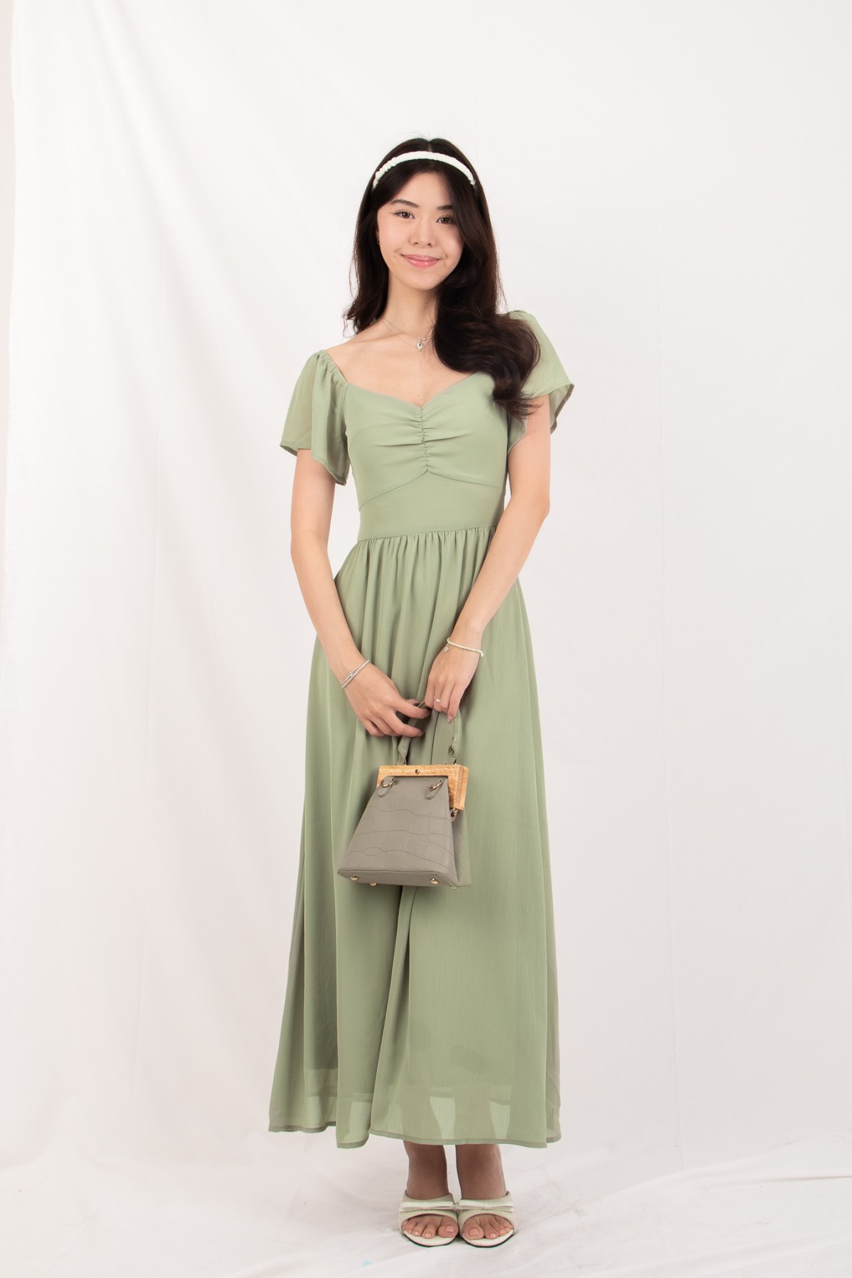 Sorelle Sweetheart Puff-Sleeve Maxi Dress in Sage