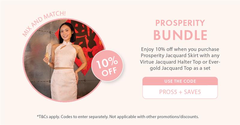 10% OFF BUNDLE EVERGOLD TOP + PROSPERITY SKIRT (APPLY CODE: PROS5 + SAVE5)